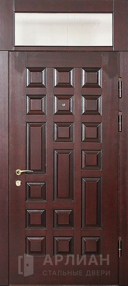 Металлическая входная дверь в коттедж с верхней фрамугой №10