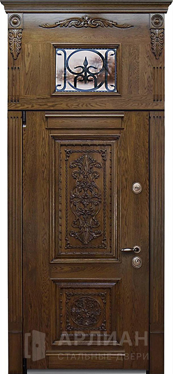 Арочная дверь для частного дома со стеклом входная №65